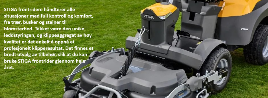 Stiga Park maskiner med leddstyring og 4WD gjør klippejobben enkel. Her har du full kontroll og suveren smidighet mellom busker og trær.