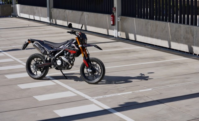 Med standardutstyr som inkluderer 17” felger, Wave-bremser og en kraftig 300 mm frontskive med dobbeltstempelkaliper, er denne supermotarden klar til å tilby sikkerhet ved å garantere en fast og stabil oppførsel, selv under sportslig kjøring.